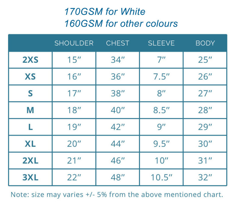Unisex Size Chart :