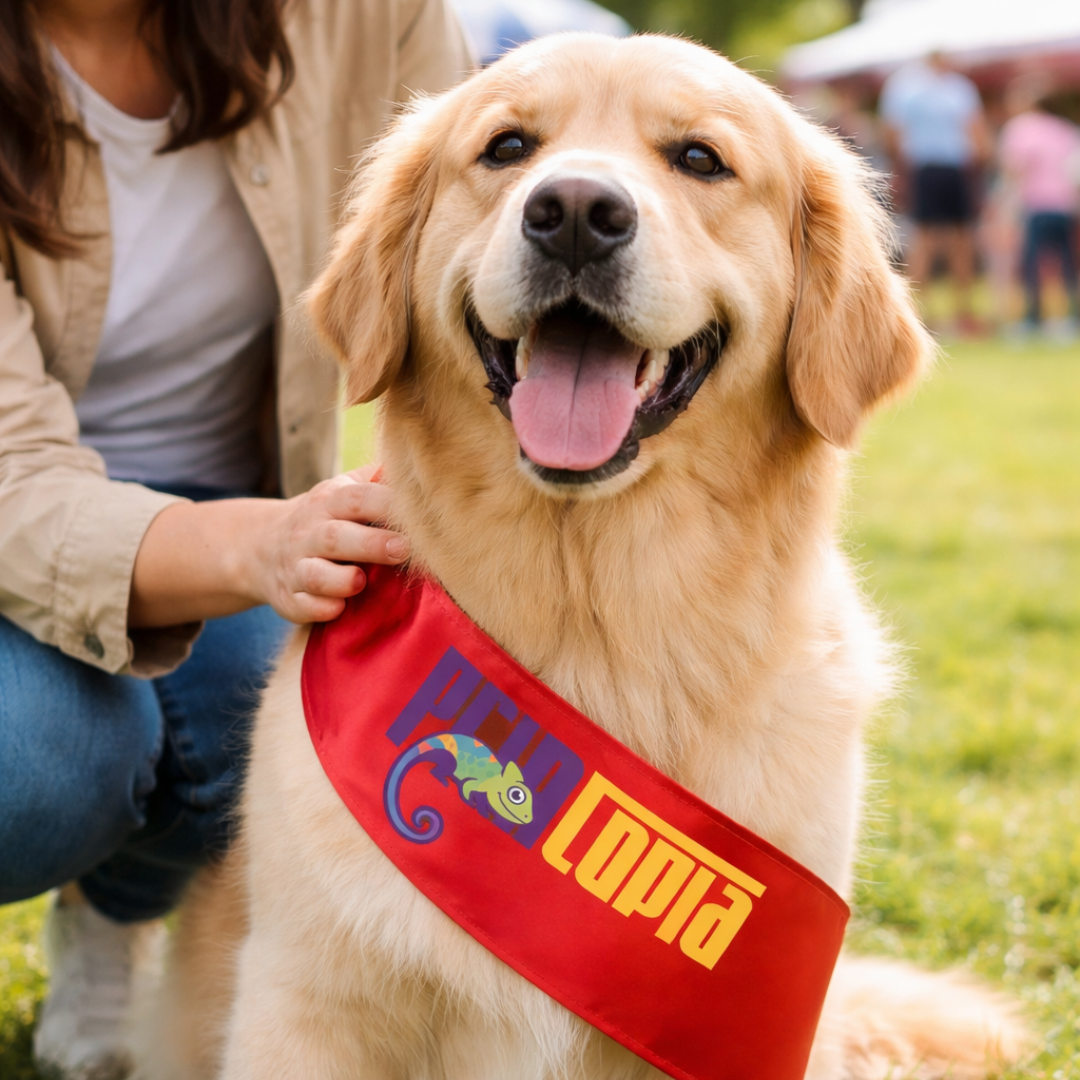 Put a branded sash on a dog at your next employee pet day or charity walk and watch what happens… people stop, they crouch down, they take photos, and those photos end up on personal social media accounts with your brand front and centre.