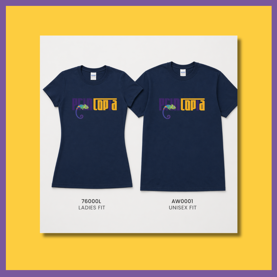 Where colour matching between the unisex and ladies cut is a requirement, confirm the specific colour availability across both SKUs with the Printopia team at the time of enquiry.