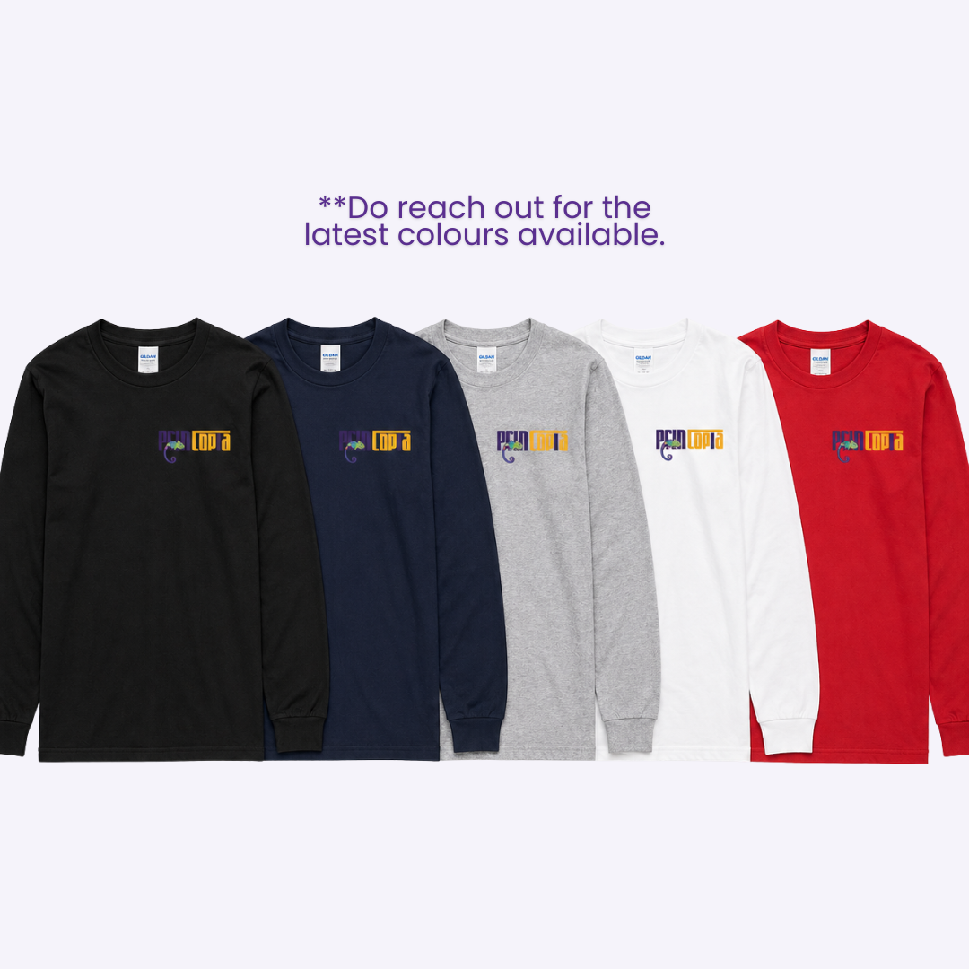 The five available colours — Black, Navy, Grey, White and Red — are the professional neutral palette rather than a broad event colour range. This reflects the primary use contexts of the Gildan long sleeve in Singapore’s market: school camps and activities (where Navy, Black and White are the most common colour choices), modest wear and Muslimah-friendly uniforms (where Navy, Black and White are institutional standards), corporate and organisational long sleeve uniforms (where Black, Navy and Grey are the professional standards), and overseas trip tees for cooler climates (where the neutral palette suits layering under jackets and windbreakers).