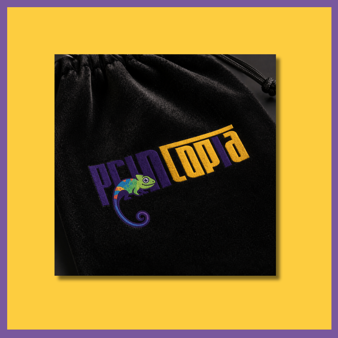 Screen printing on velvet produces a coloured ink design on the surface and suits logos requiring specific brand colours rather than a metallic finish. Embroidery stitches the logo directly into the velvet pile, producing a textured, dimensional mark that complements the fabric’s own texture.