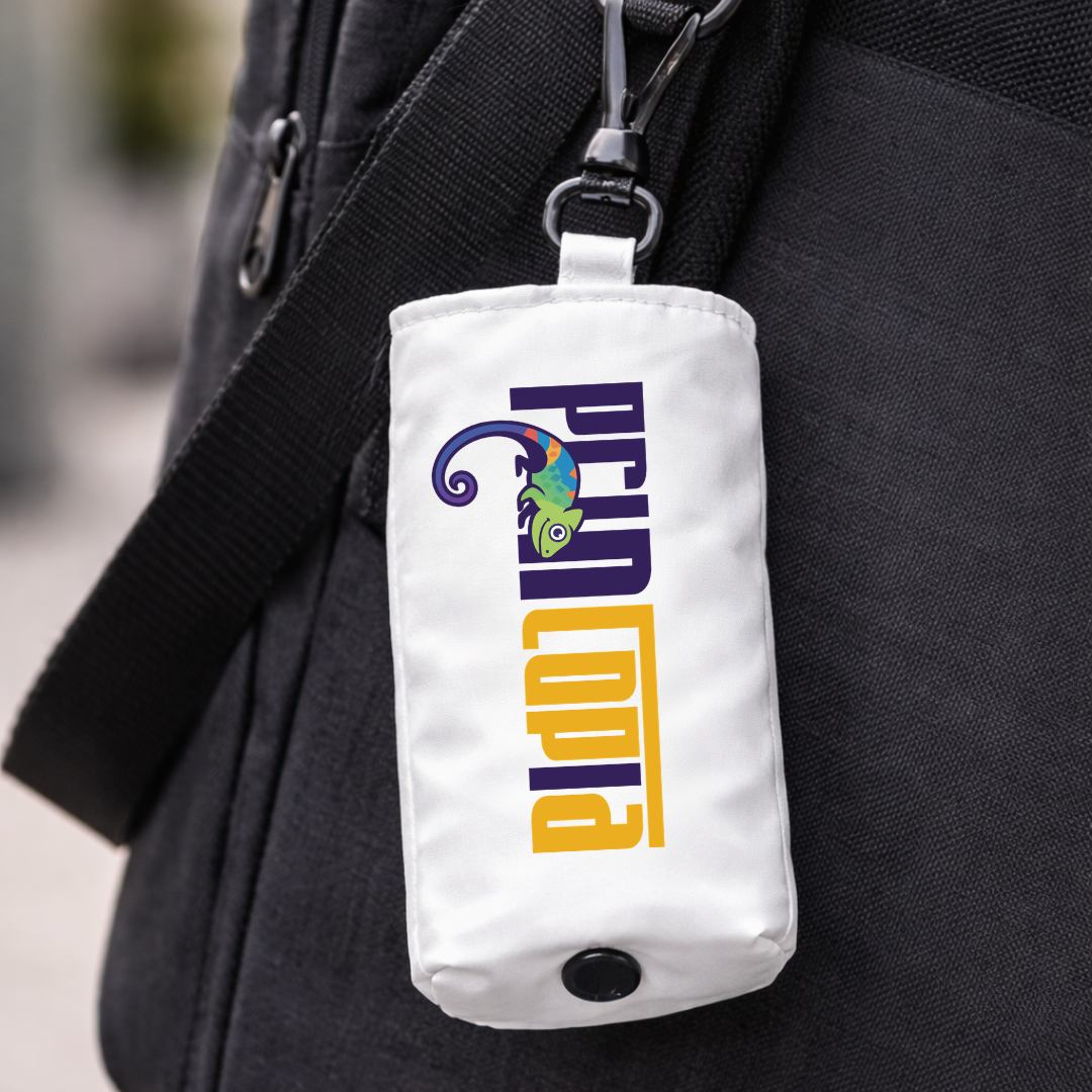 The clip. Most foldable totes fold into a pouch and then need to be placed somewhere, whether it is in a drawer, at the bottom of a handbag, or left on a shelf where they get forgotten. The clip on this pouch attaches directly to whatever the recipient is already carrying, so the bag is always available without needing to be remembered or packed separately. That is a meaningful practical upgrade that increases daily use and therefore daily brand visibility.