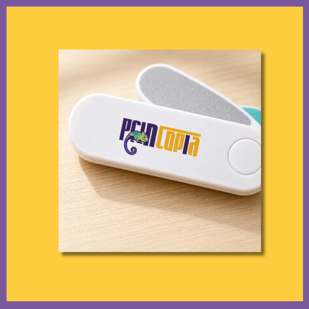 Logo printing is available on the flat surface of the nail filer. Silkscreen printing applies ink directly to the plastic surface for solid-colour logos. UV printing bonds the ink to the surface for a more durable, vibrant result. Contact the Printopia team to confirm available methods and printable area for the BP0003.