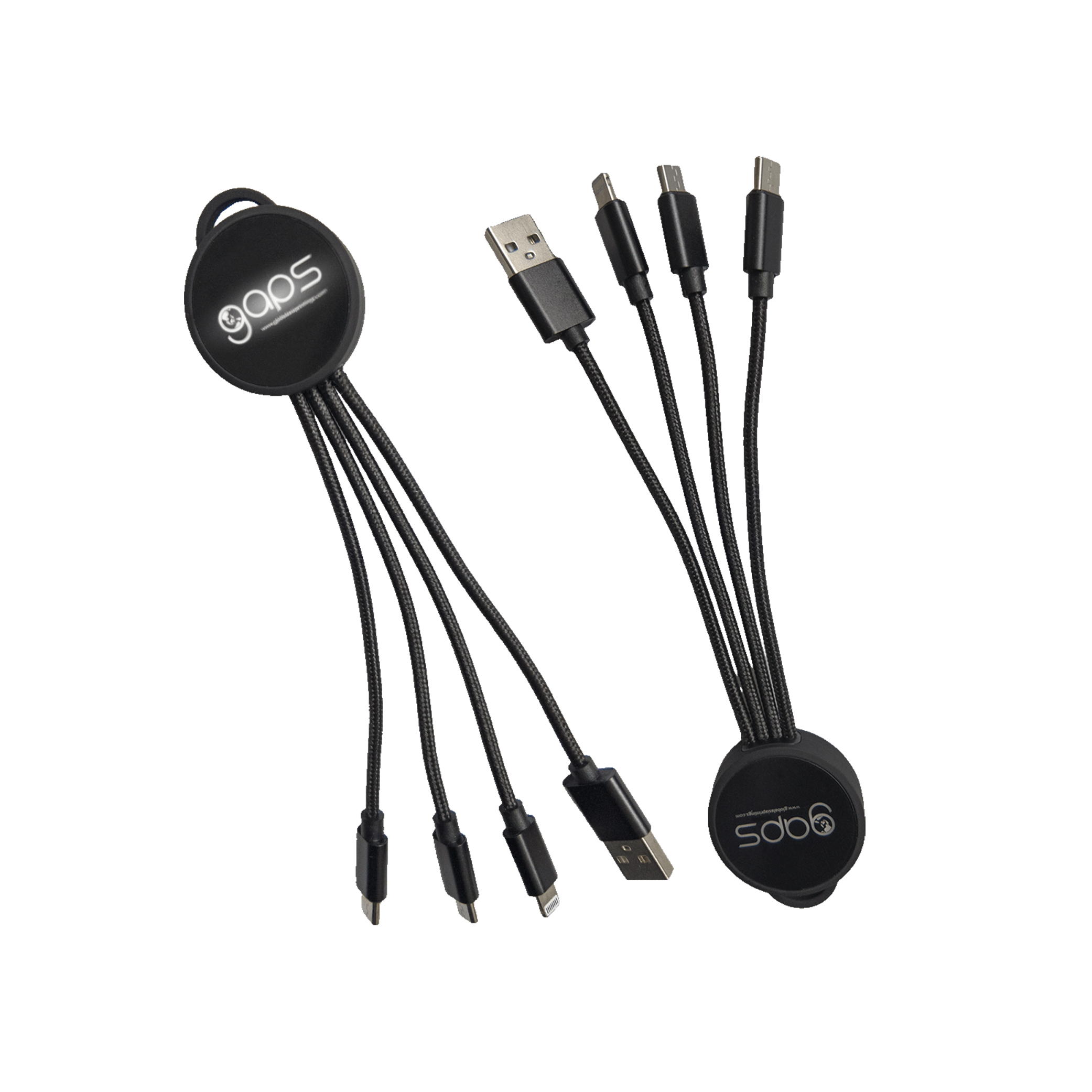 3-in-1 multicable, designed to keep you connected on the go. This versatile cable features connectors for USB-C, Lightning, and Micro USB, ensuring compatibility with a wide range of devices. But that’s not all—our multicable also boasts a customizable light-up logo, adding a touch of personalized flair while you charge. Perfect for corporate gifts, promotional events, or everyday use, this multicable combines functionality with style. Stay connected and stand out with our innovative 3-in-1 multicable.