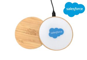 A seamlessly crafted wireless charging pad with bamboo finish backing. This eco-friendly device not only effortlessly powers up your devices but also adds a touch of natural elegance to your space. The built-in light-up logo feature not only showcases your brand in style but also serves as a subtle ambient light source. Experience the perfect blend of technology and sustainability – where innovation meets nature. Charge up, light up, and make a statement with with our EcoGlow Wireless Charger with Light up Logo.