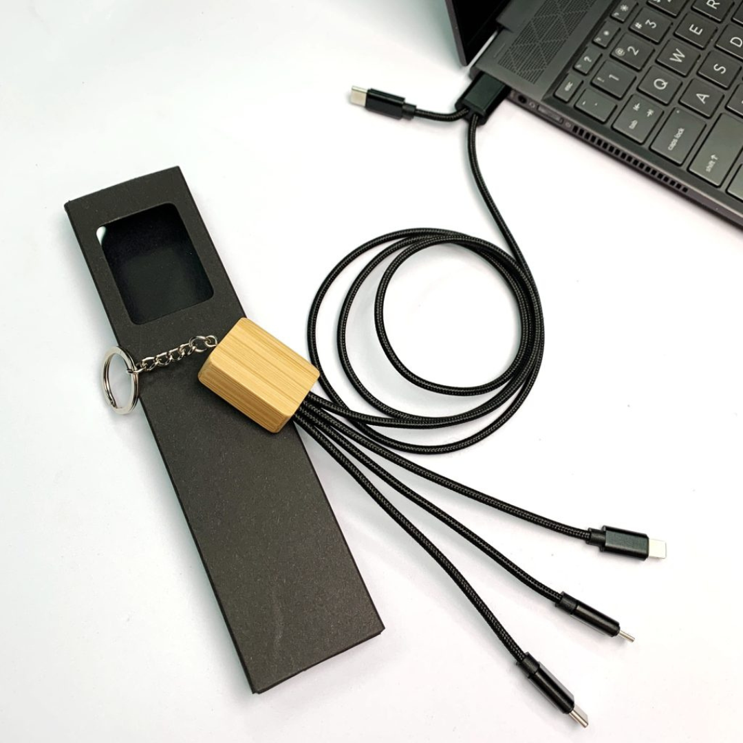 Most corporate tech gifts are forgotten within a week. The FlexiLink 5-in-1 Cable (GAPS0225) is built to be kept. The combination of genuine multi-device utility and a laser-engravable wooden accent panel gives it a dual purpose: it solves a daily charging problem and it looks good doing it, whether sitting on a desk, tucked into a bag or displayed in a premium gift box.