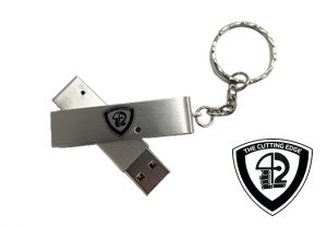 Metallic swivel type USB thumbdrive with printing or laser engraving finish. Savvy and trendy with a keyring to attach them securely to your keys/charms.