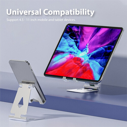 The foldable gadget stand is a versatile solution for mobile devices and tablets ranging from 4.5 to 11 inches. Its sturdy design ensures stability, and the non-slip silicon pad keeps devices securely in place. Its foldable feature makes it highly portable and convenient for on-the-go use, providing a reliable and adjustable stand for your gadgets wherever you are.