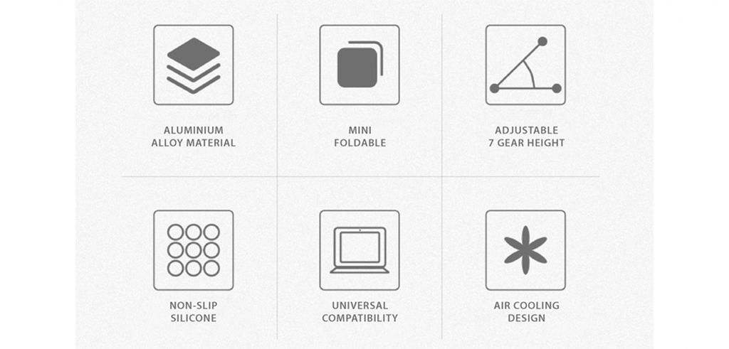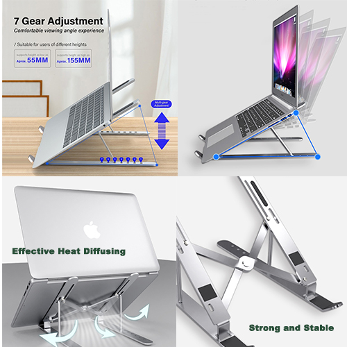 Adjustable 7 gear foldable laptop stand. Strong and stable, able to hold handphone, iPad, laptops up to approx 80kg. Portable, can be folded into 25.5cm x 4.4cm x 1.9cm for easy carry and storage without taking much space.