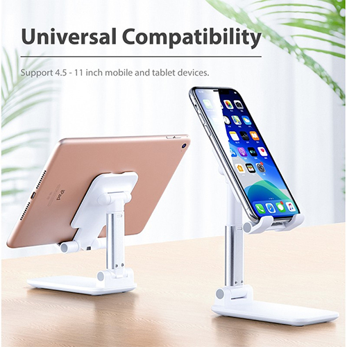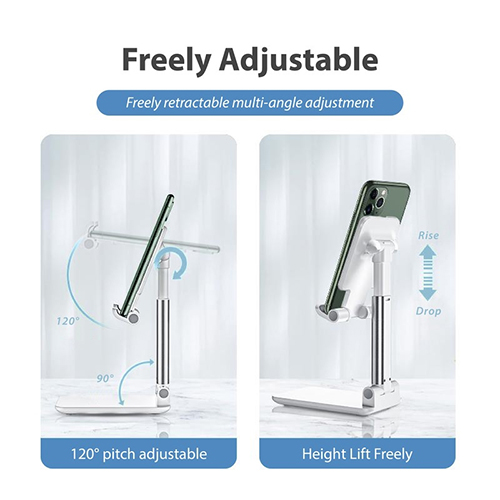 Foldable, portable mobile stand with adjustable height and angle for optimal use. Sturdy base with built in alloy plate and support rod allows stable support without shaking.