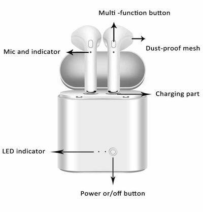 Wireless earphone with dock. Suitable for gym and jogging. Compatible with most bluetooth devices like phones, tablet, laptop, iPad, desktop.