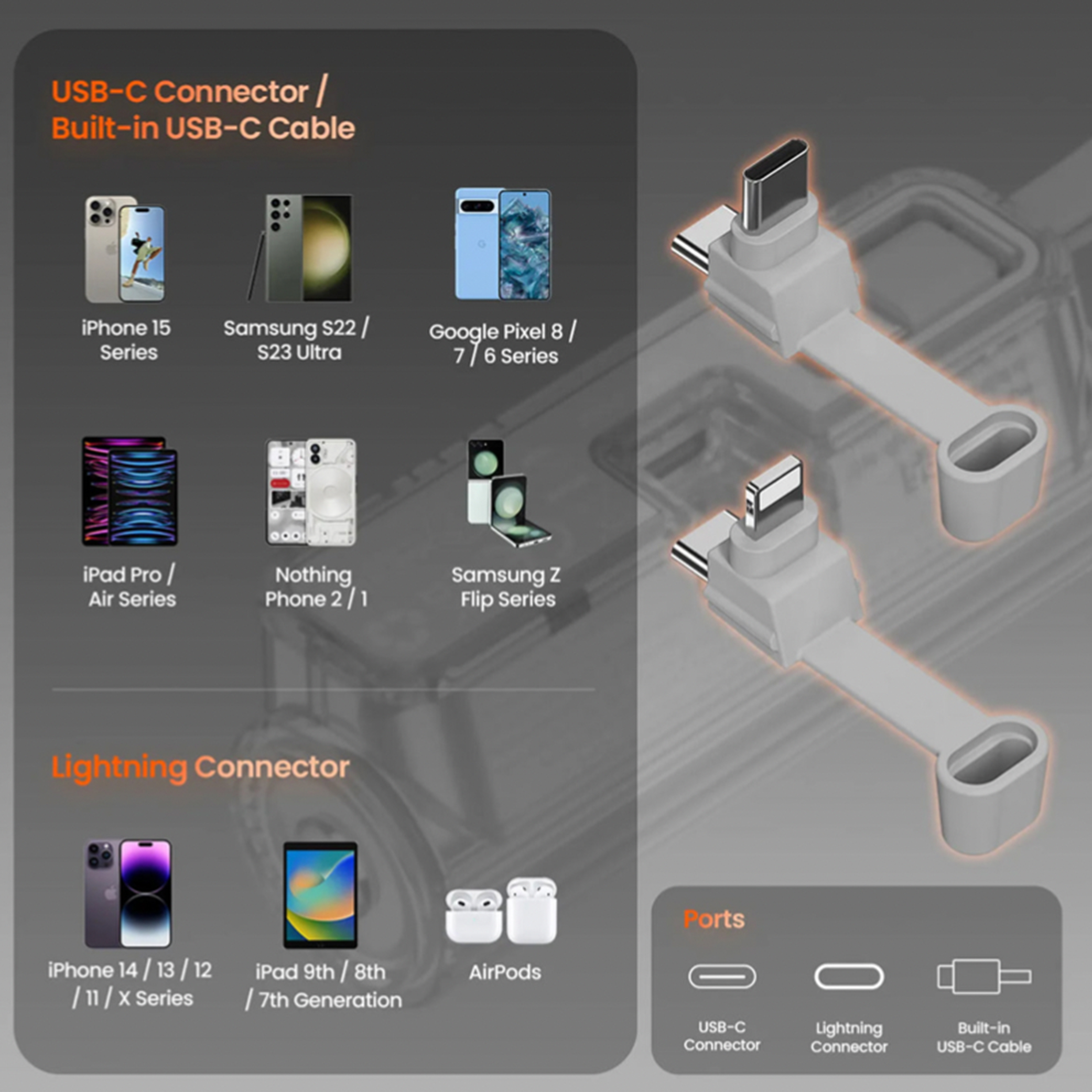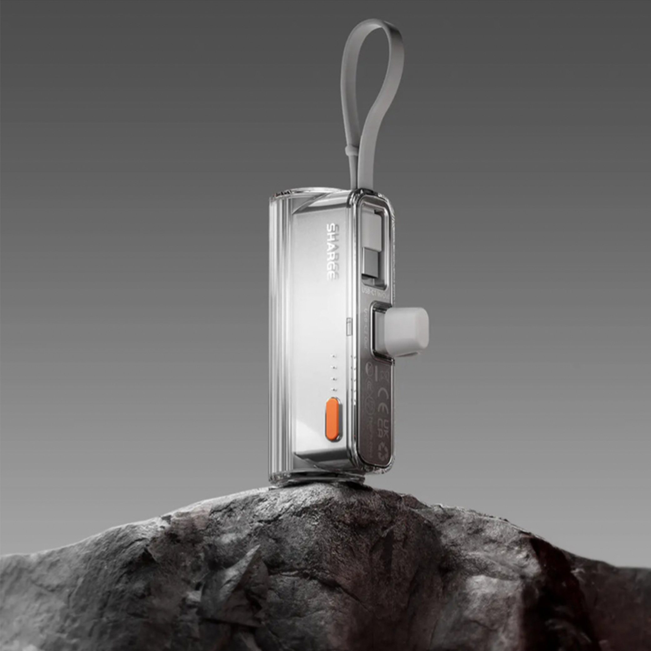 Shargeek Flow mini 5000mAh Powerbank. Chic design, small and lightweight Portable Power Bank with Built-in Cable and interchangable Connector that is compatible for iOS and Andorid. Charge up to 2 device at a time.
