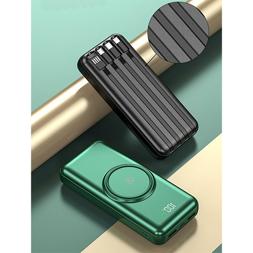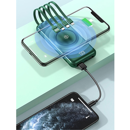 Wireless charging powerbank with 4 In-Built Cable that allows you to charge different gadgets at the same time. A perfect fit for the everyone.