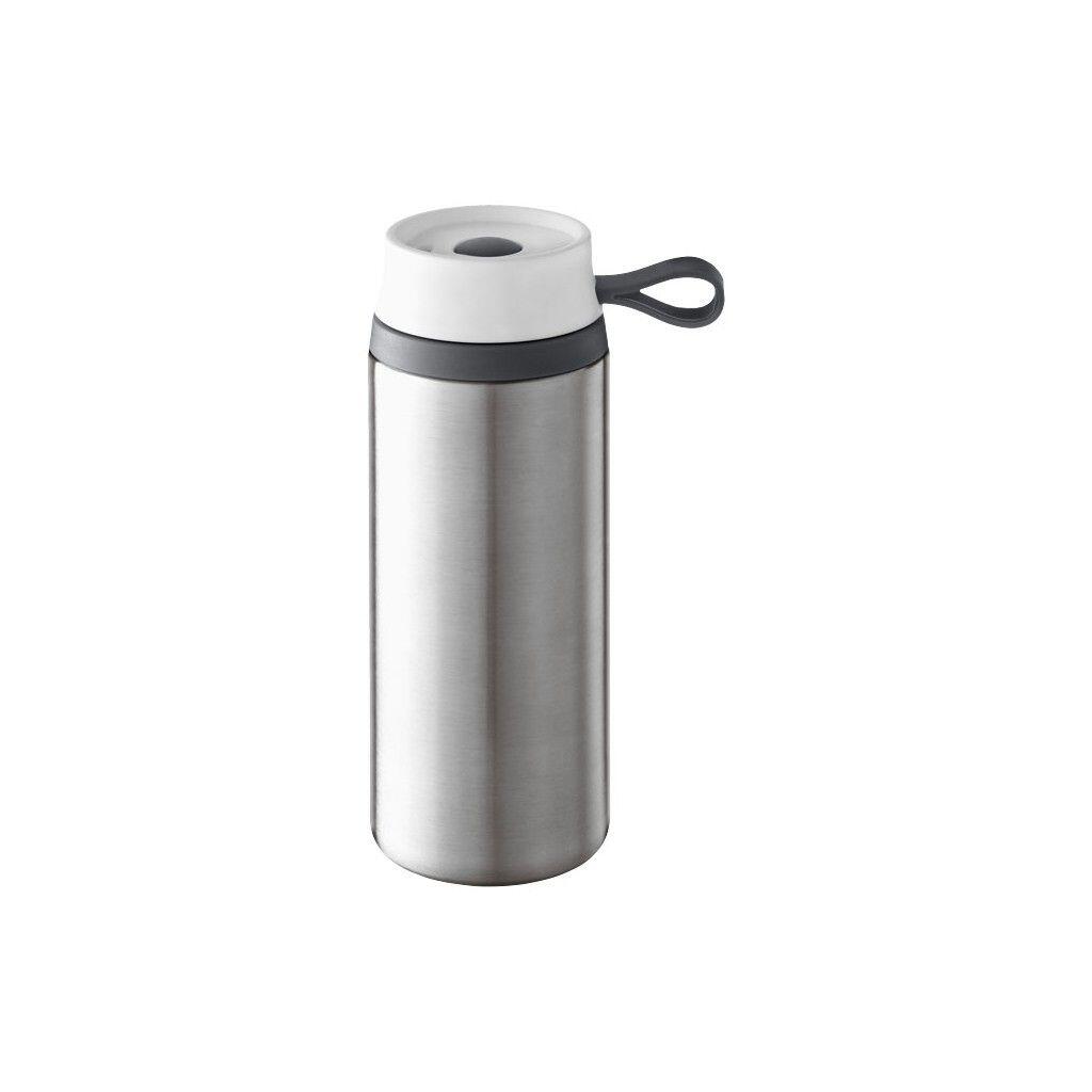 Double wall foam insulated tumbler with a single hand, screw on push button lid with a non leaking function to ensure your drink stays put. Exterior in stainless steel and interior in plastic. The silicone pad on the bottom makes the tumbler skid proof.