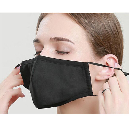 Reusable 4 layers cotton face mask with adjustable ear loop. Back with inner slot for PM2.5 filter (For added protection).