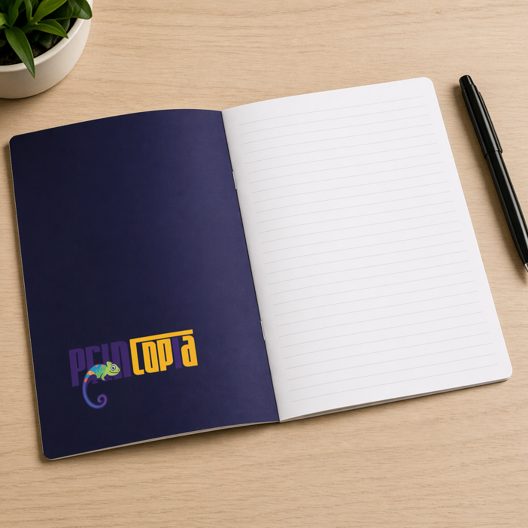 Plain pages are completely blank and suit notebooks intended for sketching, ideation, custom-printed content or any use where a grid or lines are not required. Lined pages carry horizontal ruling lines across each page and suit standard note-taking and writing. The choice is specified at order stage. Some buyers specify lined pages for the writing section and reserve the first few pages for custom-printed content such as a schedule or activity guide — confirm this requirement with the Printopia team.