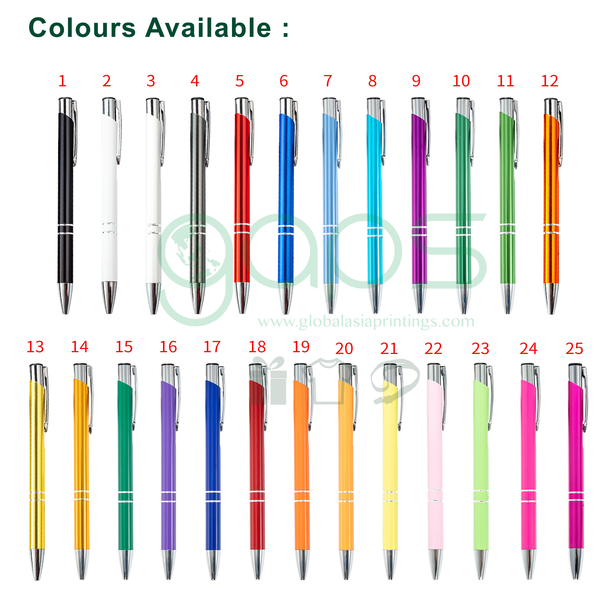 In stock colours : Black, Red, Royal Blue, Green, Silver