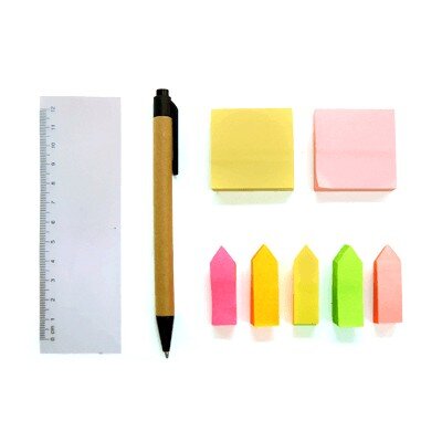 Colourful post it pad, 120 sheets per colour, 80gsm. PP ruler with cm scale. With ball pen in black colour ink.