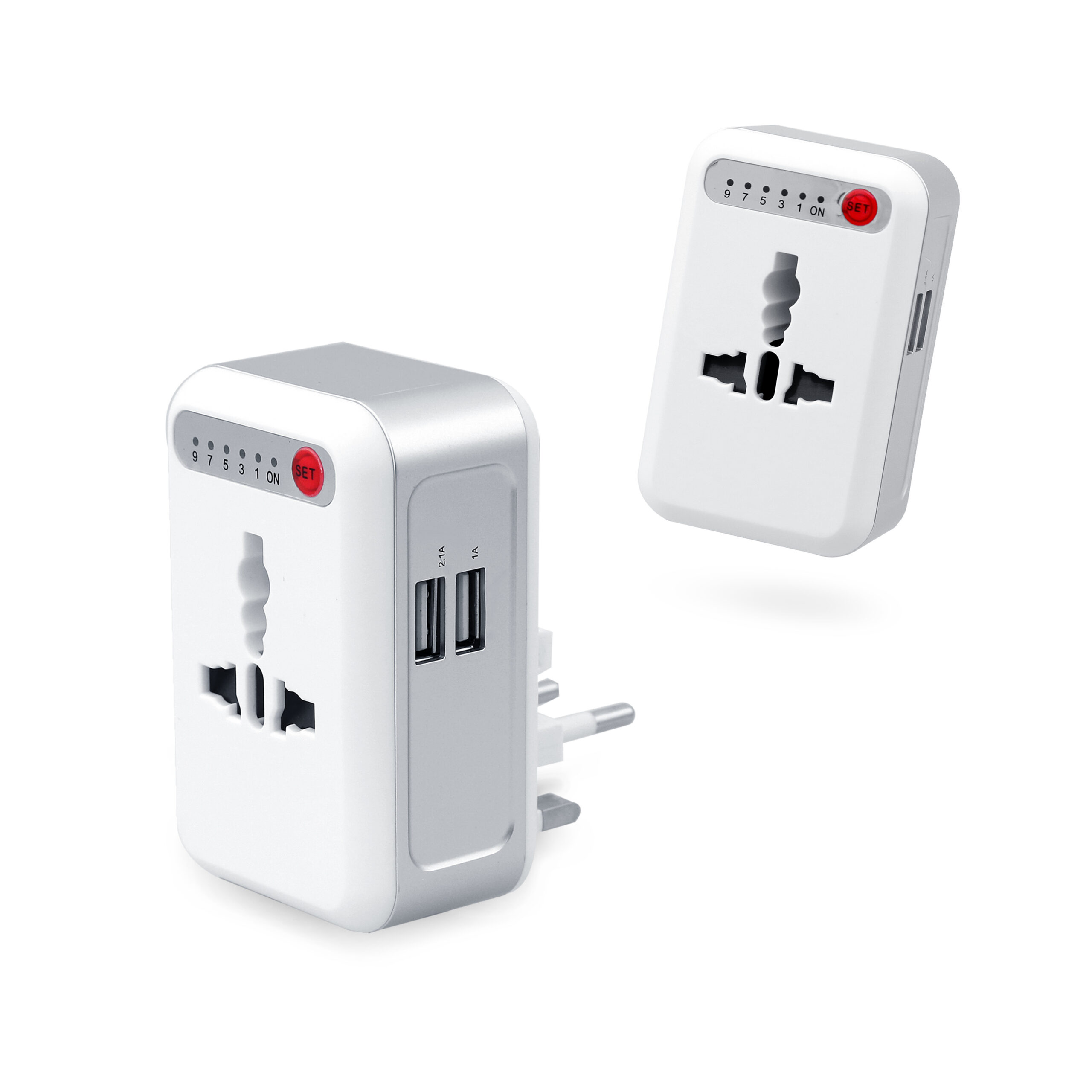Universal worldwide adaptor plug, can be used in US, UK, US, AU and in more than 150 countries. The built-in 2 USB ports facilitates the charging of mobile electronic devices. Timer can be set according to your needs, power supply will be cut-off automatically upon time-out.